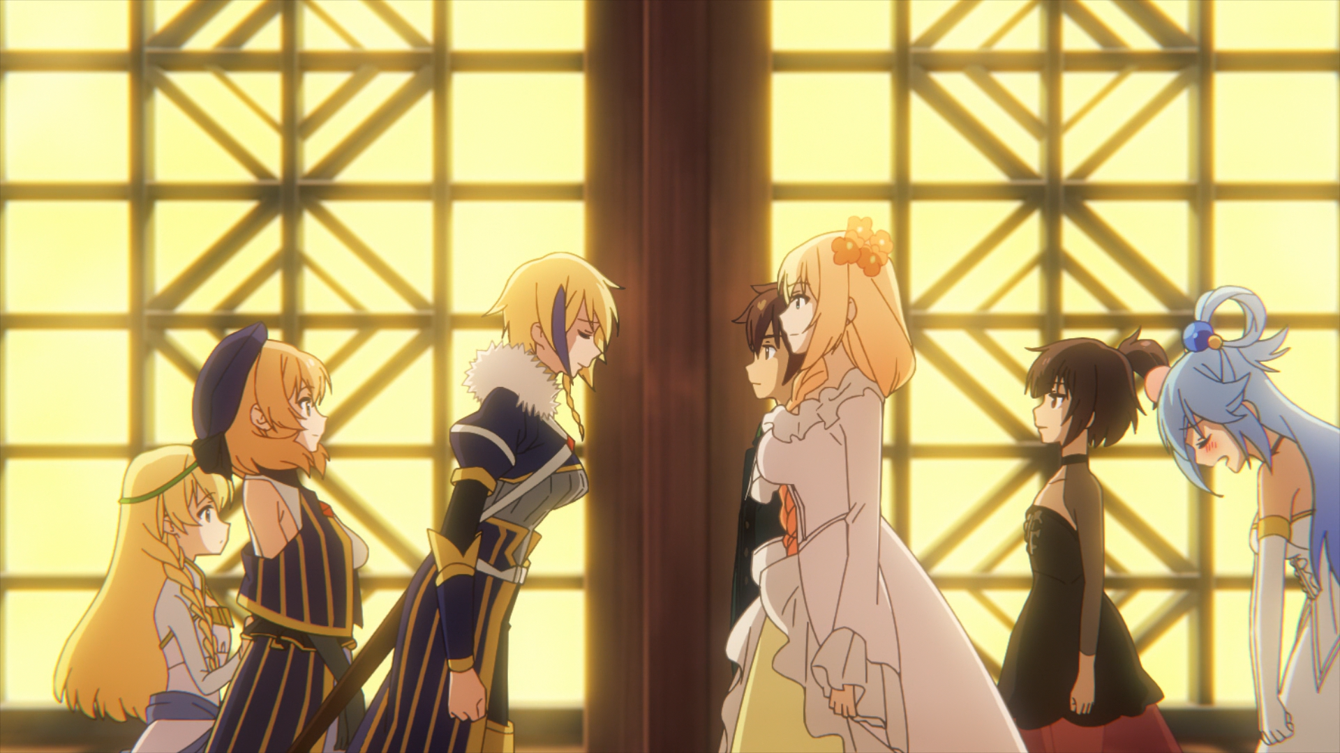 darkness cosplays as a maid, wiz acts as a real business owner, aqua gets clowned on, megumin is inconvenienced by her flat chest, the princess iris is revealed and kazuma steals some underwear!